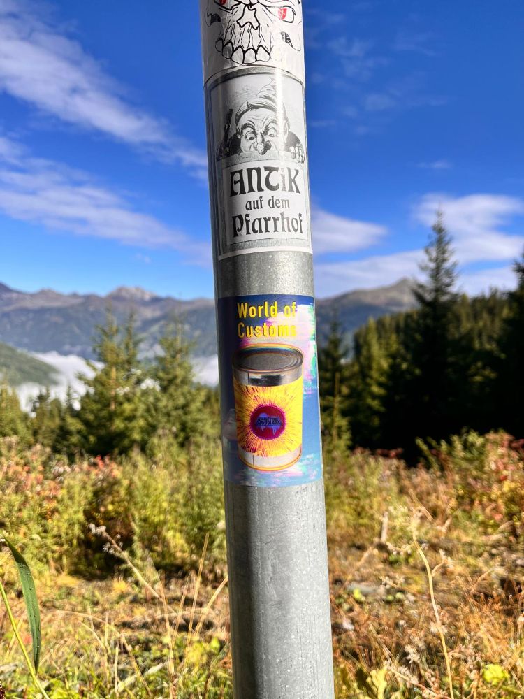 Klebt einen Sticker an einen schönen Ort auf dieser Welt, macht ein Foto und ladet es hoch.